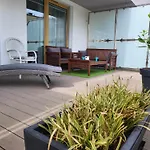 Dieses Apartment bietet seinen Gästen einen Balkon, eine Terrasse und eine Sitzecke, die mit einem Sofa und modernen Annehmlichkeiten wie einem Flachbildfernseher mit Satellitenkanälen ausgestattet sind. Zu den Sicherheitseinrichtungen im Zimmer gehören Rauchmelder und ein elektronischer Kartenschlüssel. Gästen stehen Betten mit allergikerfreundlichen weichen oder dicken Kopfkissen zur Verfügung. Diese Unterkunft verfügt über eine behindertengerechte Dusche, eine getrennte Toilette und ein Waschbecken in einem privaten Badezimmer mit einem Haartrockner und Badelaken.